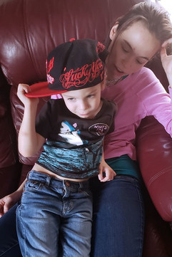Shaylyn and Zach are super close and he loves snuggling up with her. On this day, she decided she'd let him wear her hat.