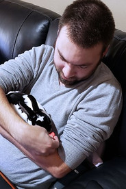 Later that night, in an effort to bring his spirits up a bit, Shaylyn let him hold DaVinci and he forgot all about his injury.